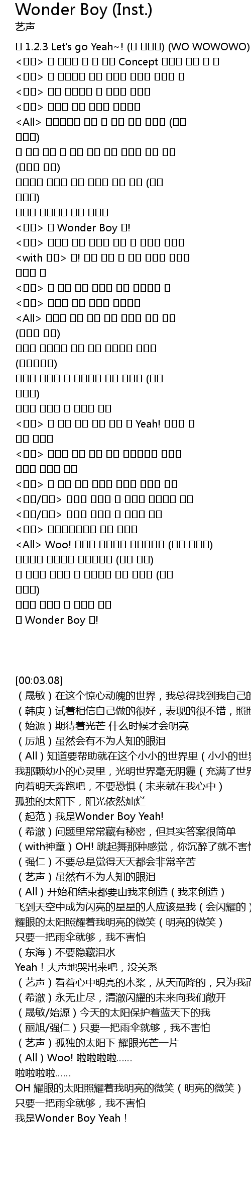 | [02:58.35] | 我是Wonder Boy Yeah! |