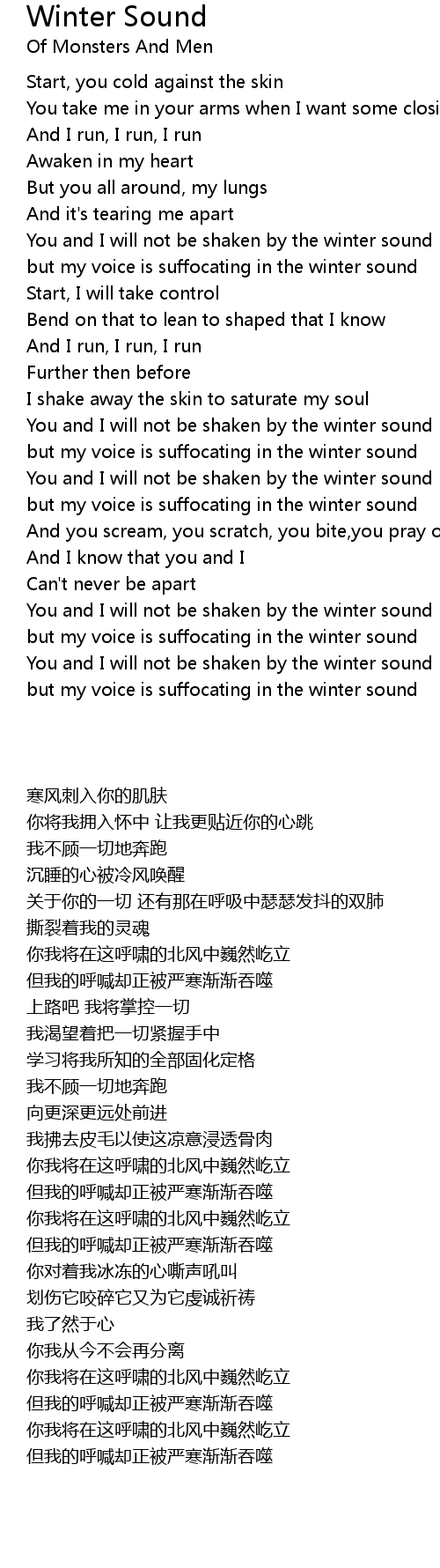 You and I will not be shaken by the winter sound |