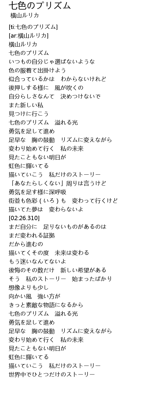 | [03:37.528] | 七色のプリズム 溢れる光 |