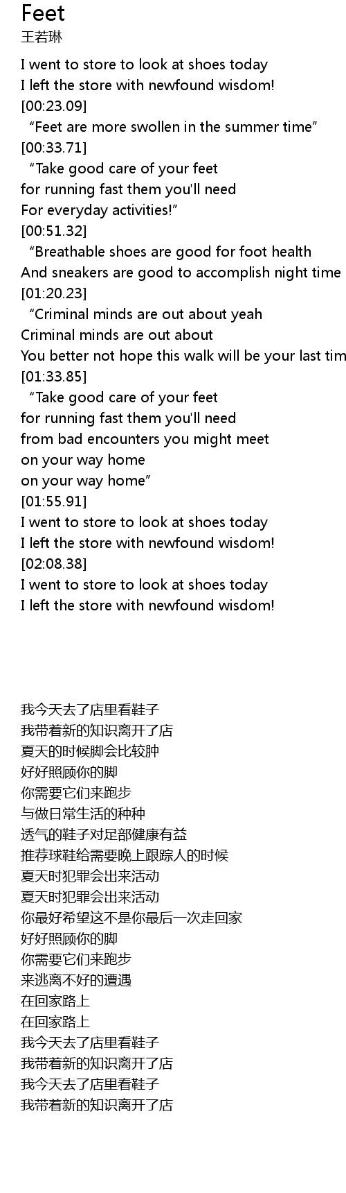 | [00:43.57] | " Take good care of your feet |