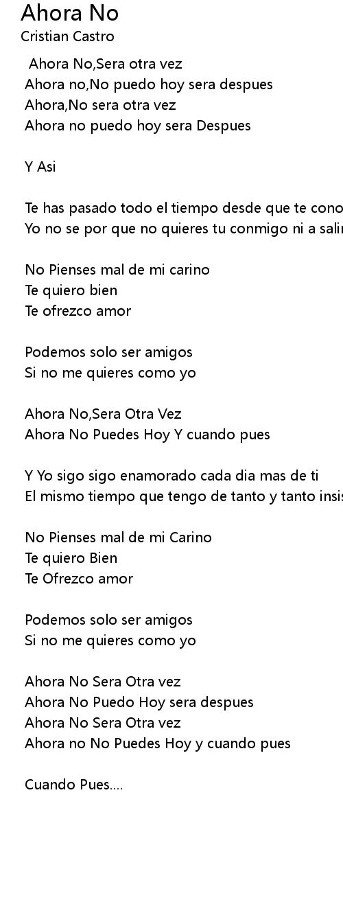 Ahora no No Puedes Hoy y cuando pues |