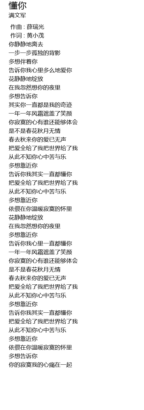 | [04:23.110] | 从此不知你心中苦与乐 |