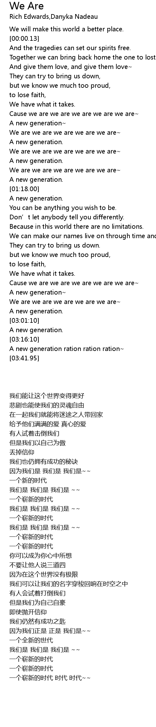 | [01:03.39] | 我们是 我们是 我们是 ~~ |