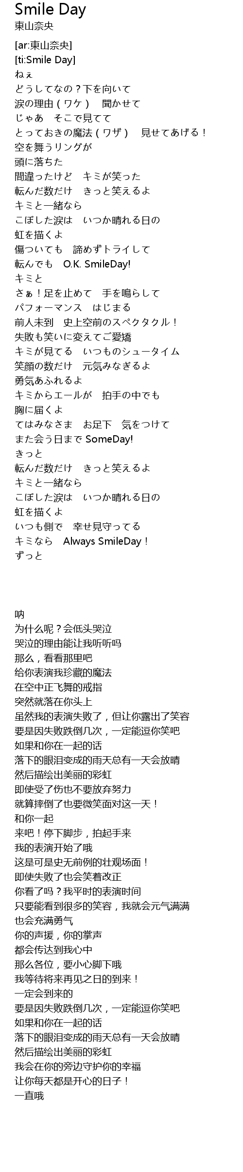 | [01:23.79] | zhuǎn O. K. SmileDay! |