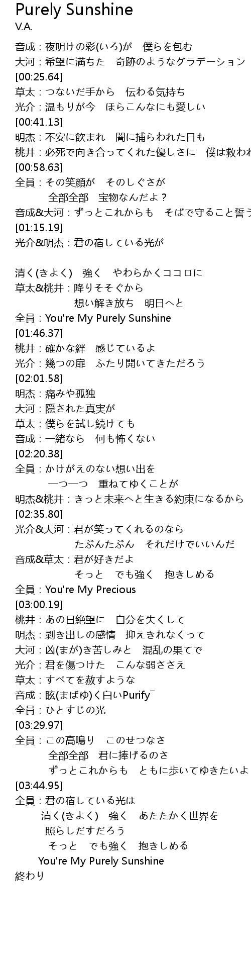 | [01:34.39] | 全員:You're My Purely Sunshine |