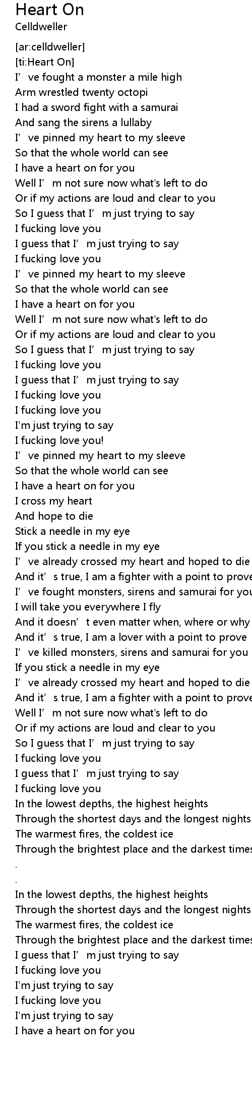 | [00:29.82] | I' ve pinned my heart to my sleeve |