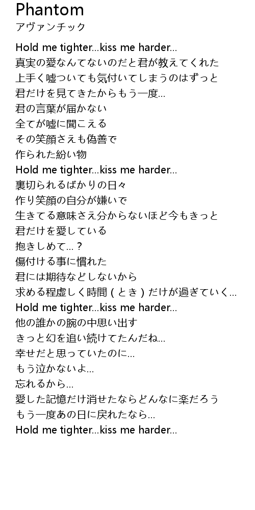 | [03:32.65] | Hold me tighter... kiss me harder... |