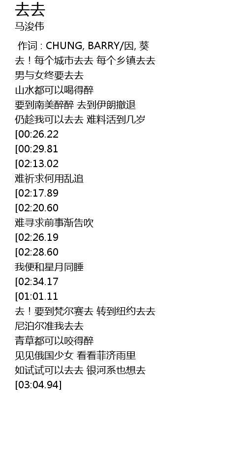 | [02:58.01][02:34.17][01:51.96][00:55.47] | zong gu dan dou hui xiang dang you qu |