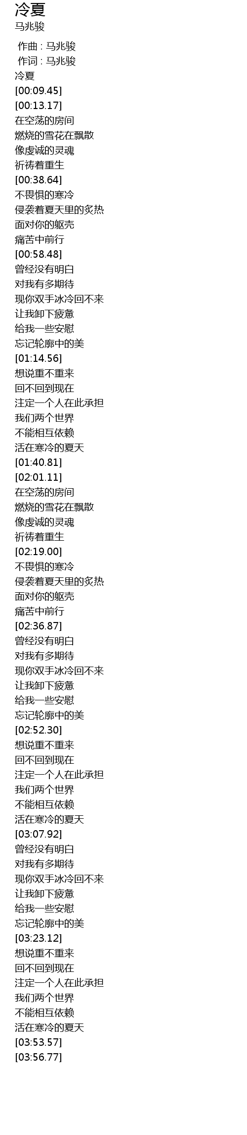 | [00:00.20] | 冷夏 |