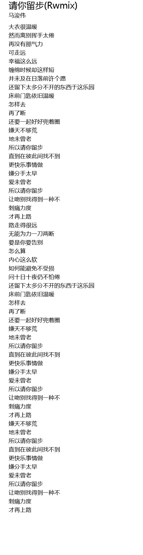 | [03:04.720] | suǒ yǐ qǐng nǐ liú bù |