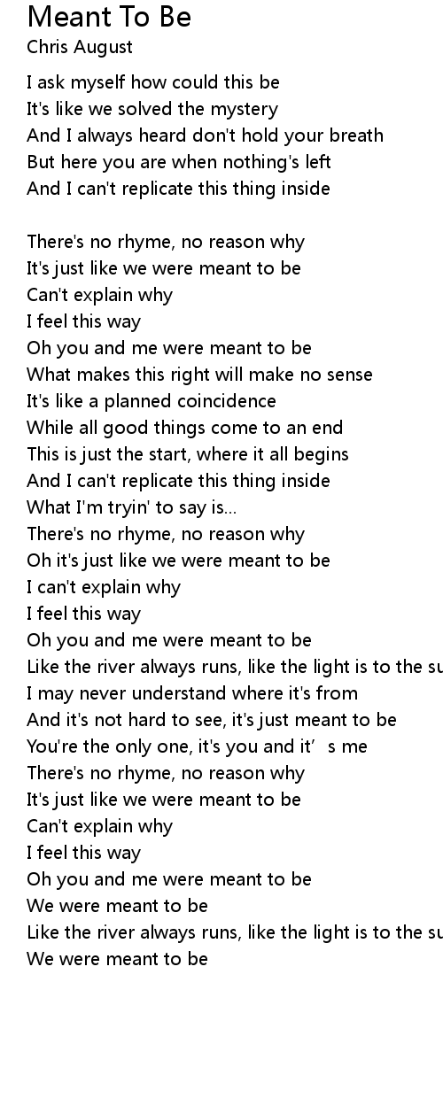 | Oh it's just like we were meant to be | |
