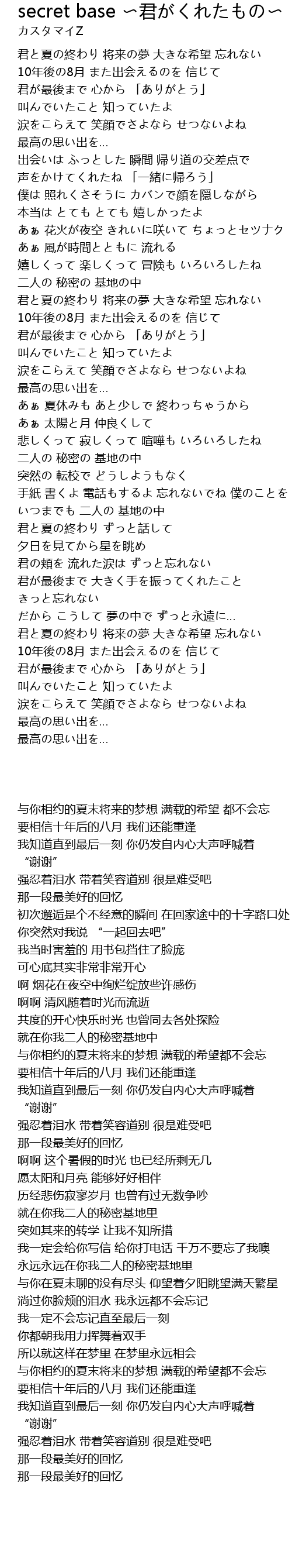| [02:53.54] | いつまでも 二人の 基地の中 |