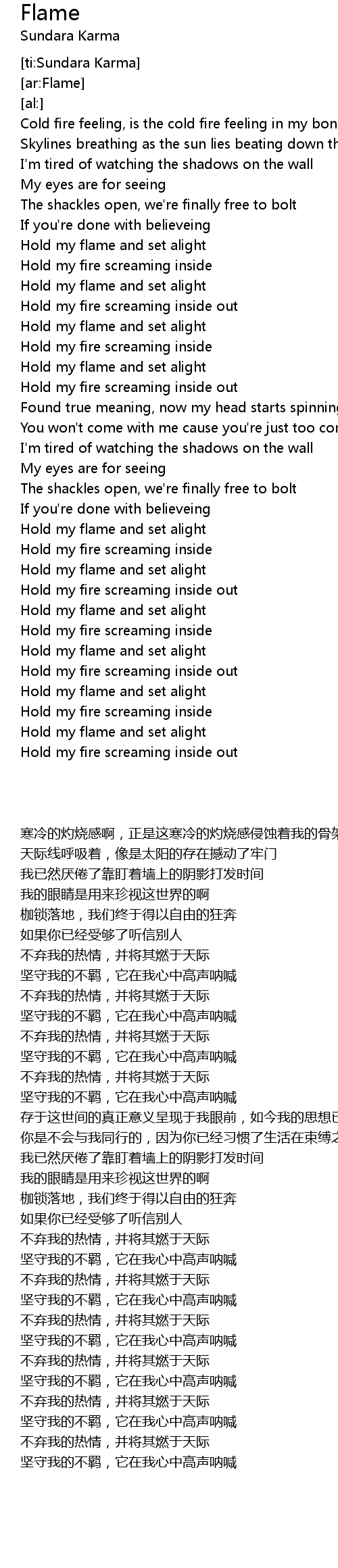 Hold my fire screaming inside |