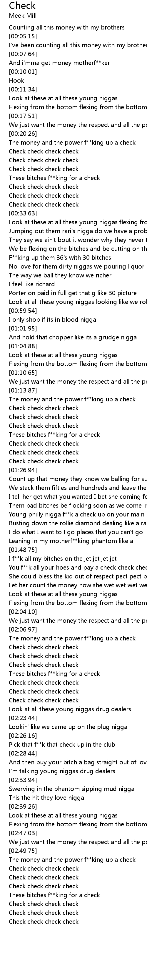 | [01:52.04] | You f**k all your hoes and pay a check check check check |