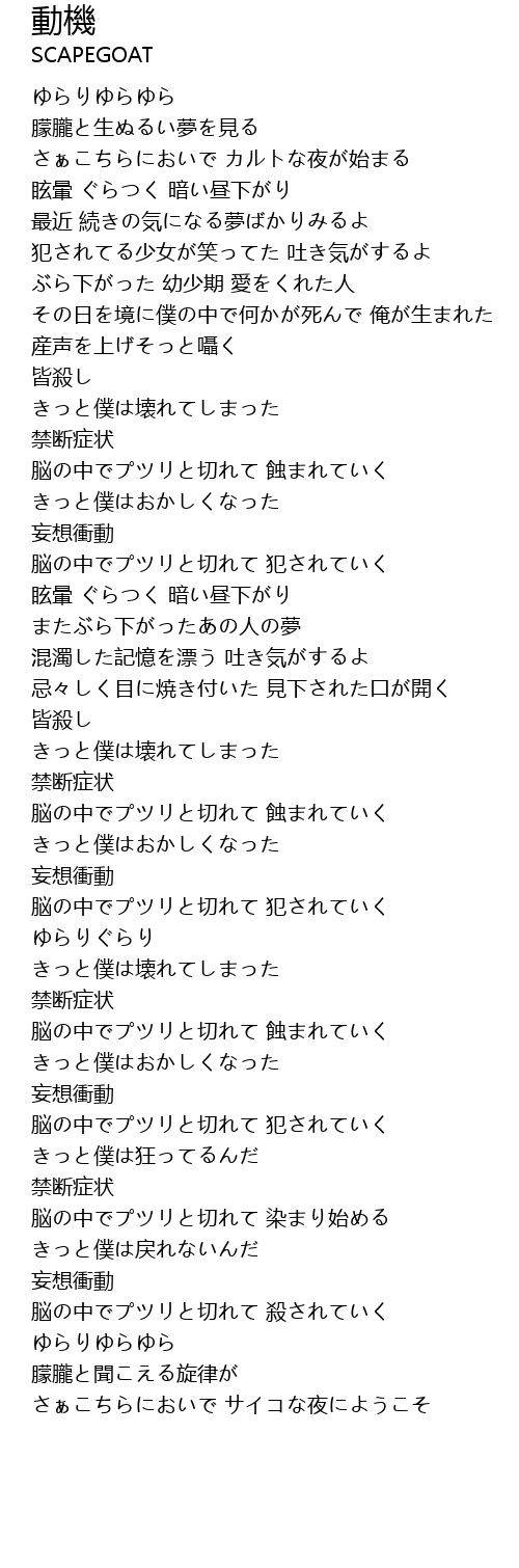 | [01:08.640] | 犯されてる少女が笑ってた 吐き気がするよ |