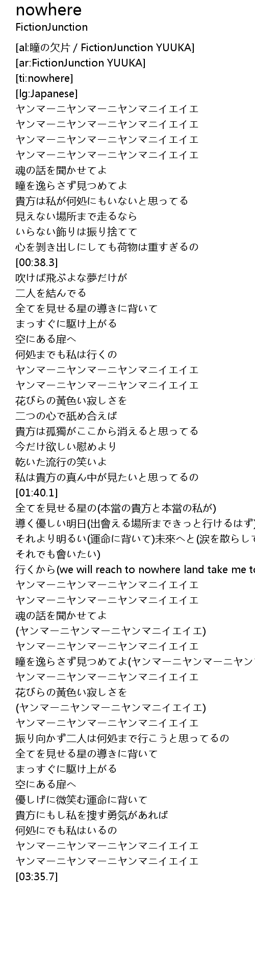 | [02:22.1] | 行くから(we will reach to nowhere land take me to the nowhere land) |