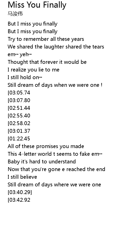 Miss You Finally 歌词