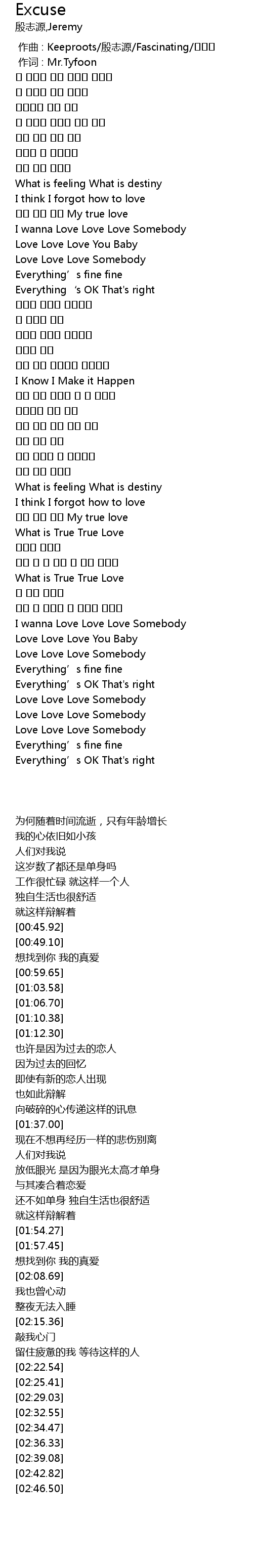 | [00:01.00] | 作词 : Mr.Tyfoon |