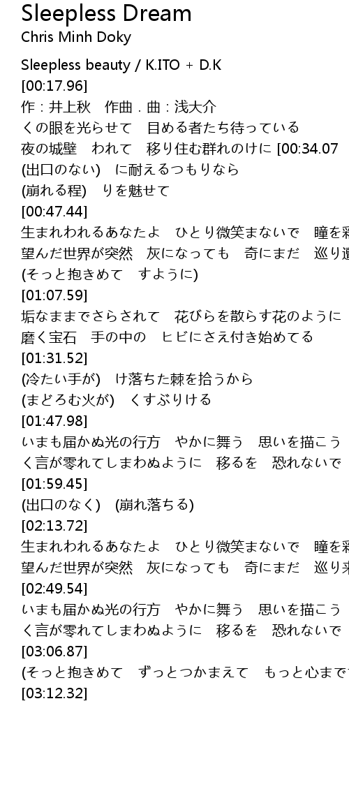 | [00:15.00] | Sleepless beauty / K.ITO + D.K |