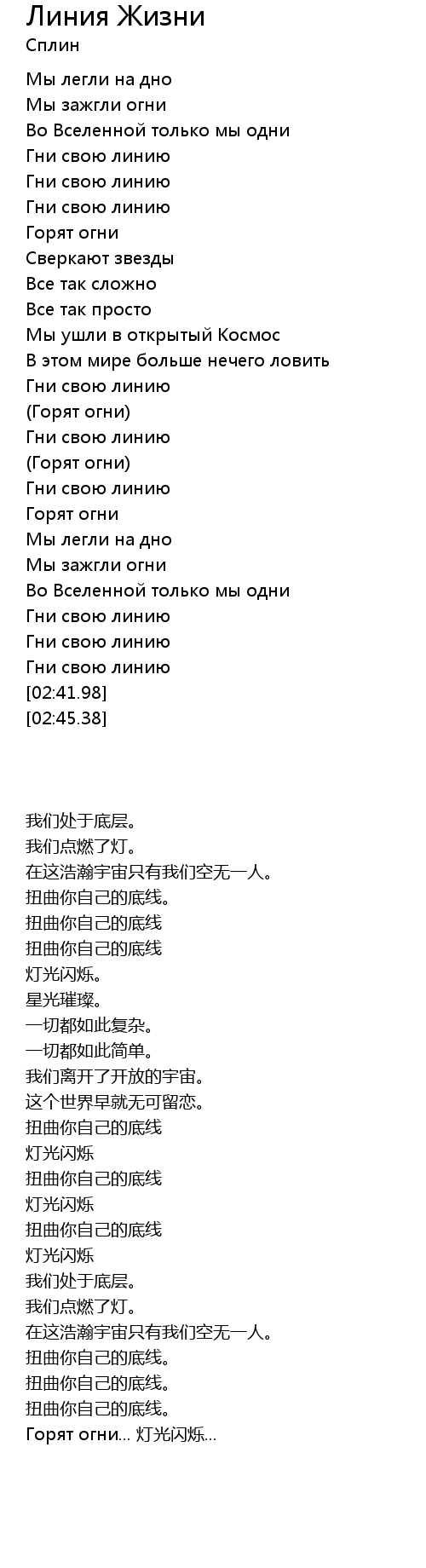 | [02:41.98] | Горят огни... 灯光闪烁... |