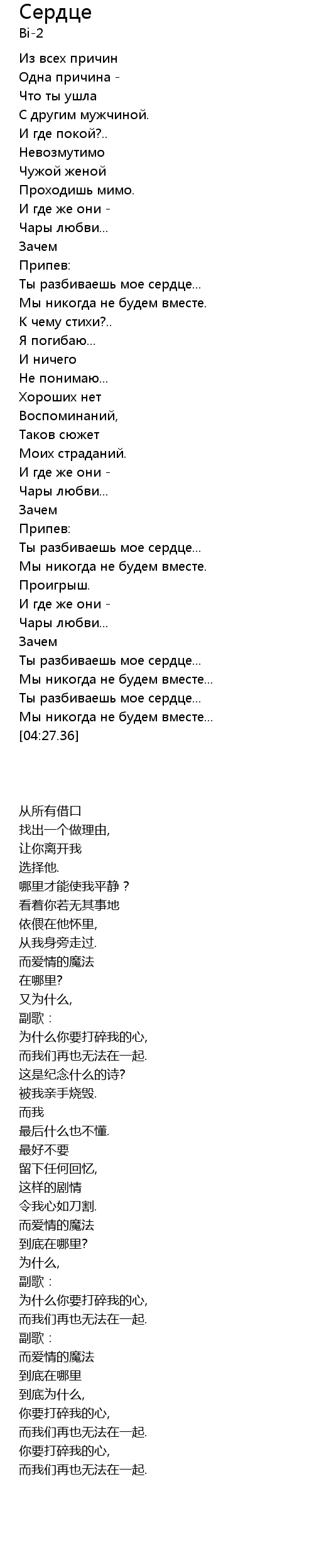 | [02:33.38] | Ты разбиваешь мое сердце... |