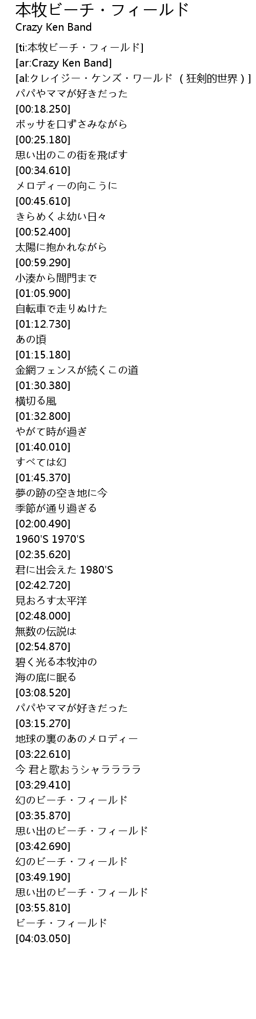 | [03:50.660] | 思い出のビーチ・フィールド |