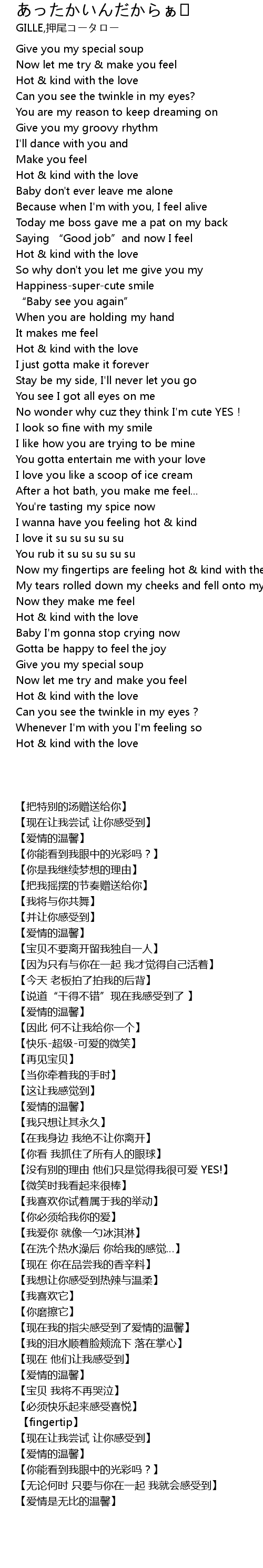 | [03:23.43] | Hot & kind with the love |