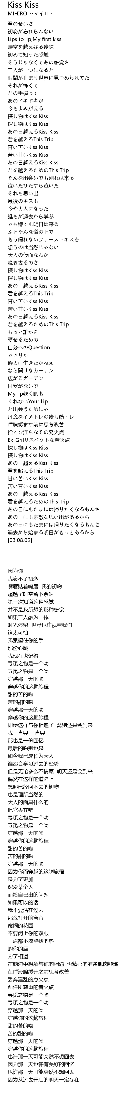 | [02:34.69] | gān kǔ Kiss Kiss |