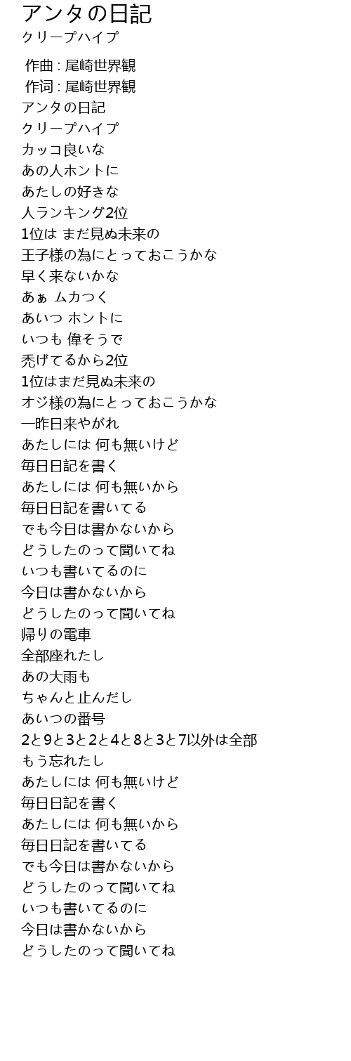 | [00:15.50] | アンタの日記 |