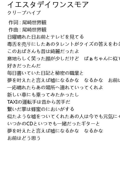| [00:01.000] | 作曲 : 尾崎世界観 |