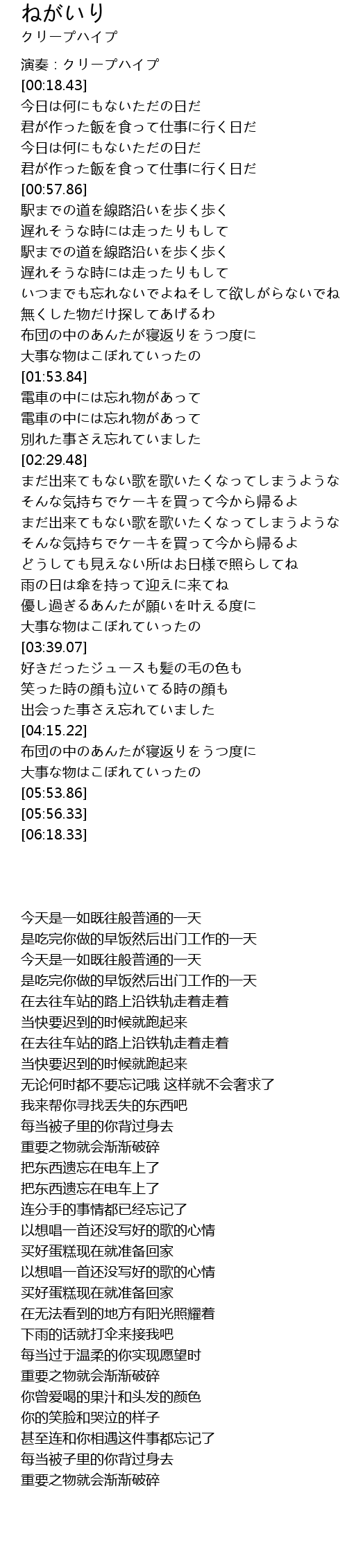 | [00:10.95] | 演奏:クリープハイプ |