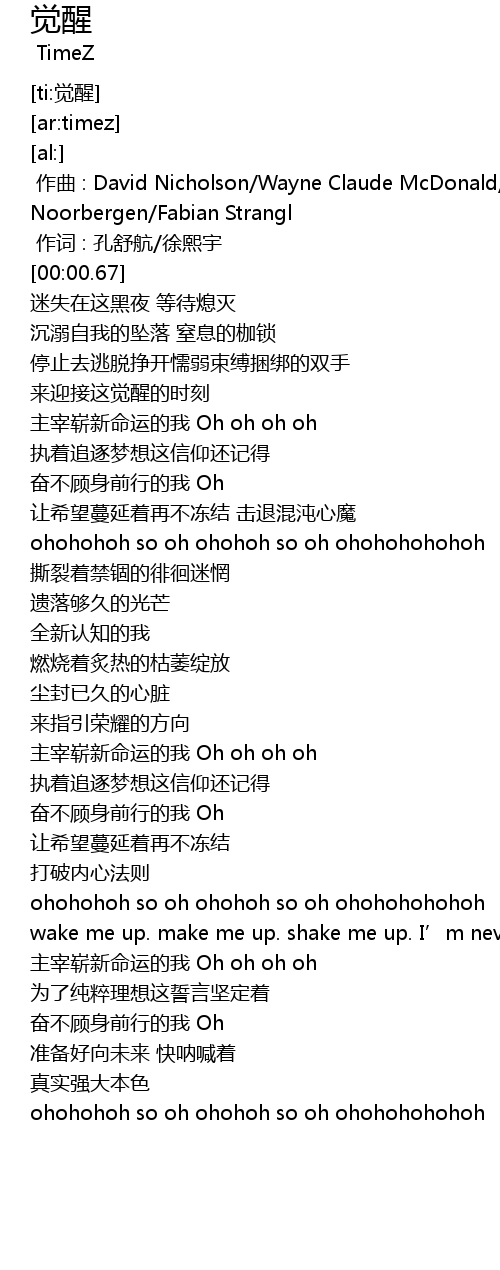 | [02:12.21] | wake me up. make me up. shake me up. I' m never gonna stop |