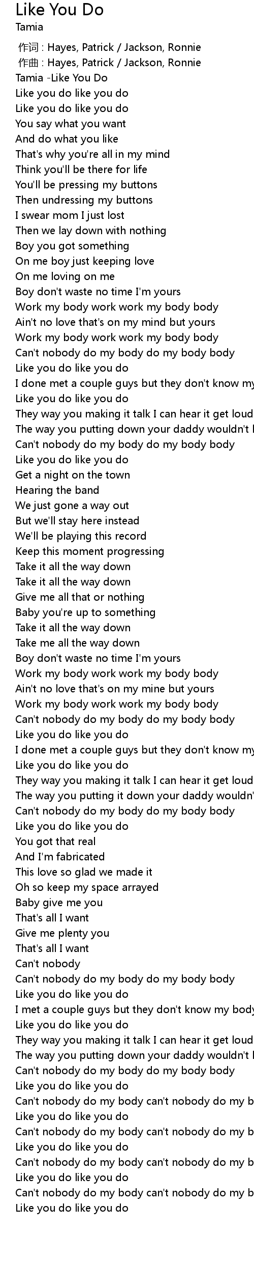 | [00:59.303] | Can' t nobody do my body do my body body |