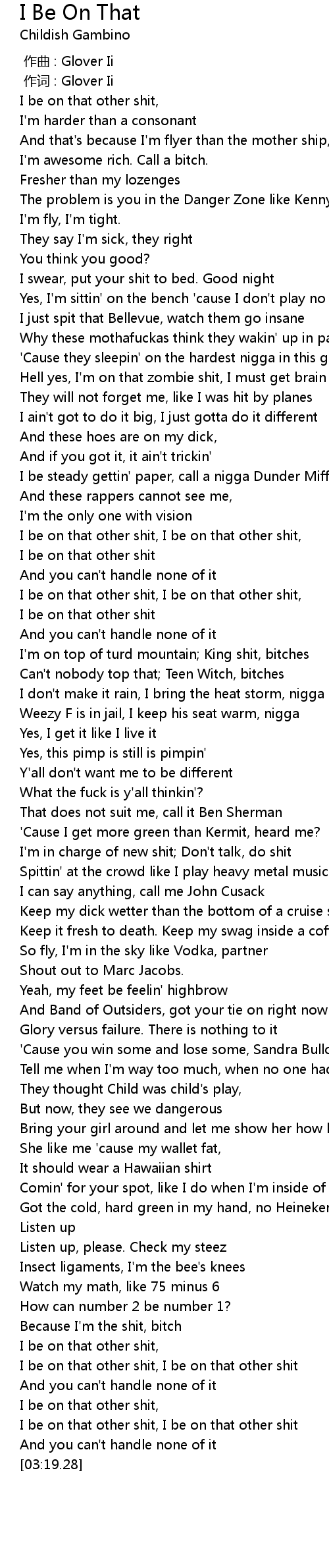 | [03:06.27] | I be on that other shit, I be on that other shit |