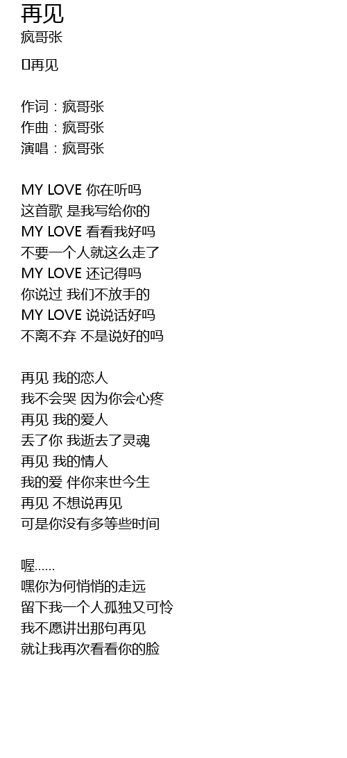 作词:疯哥张