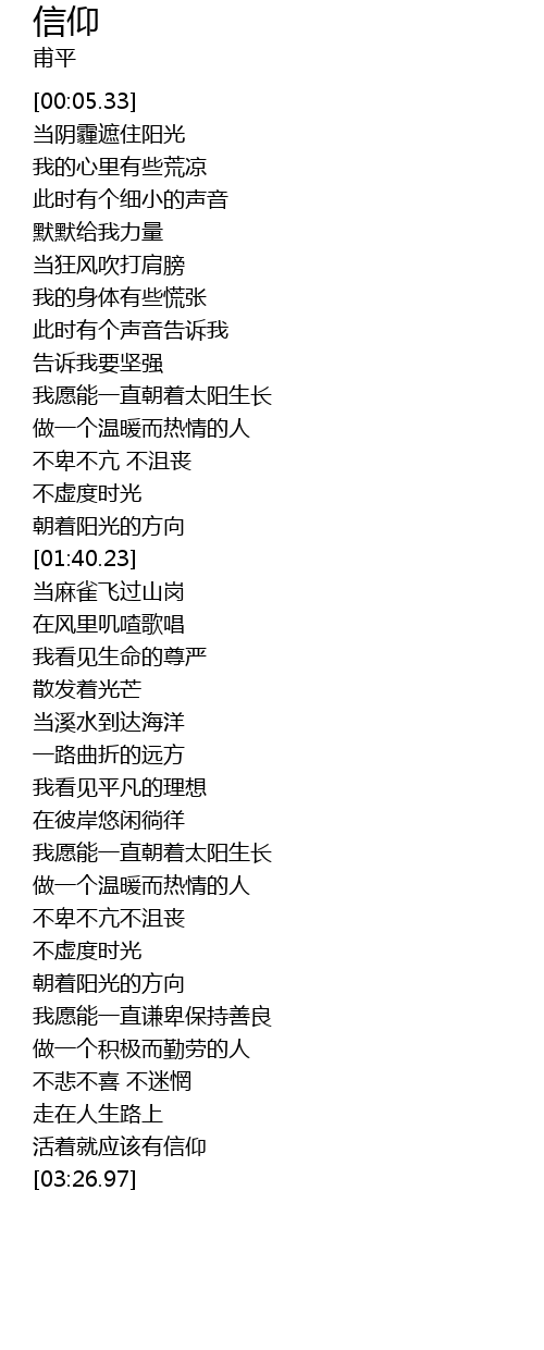 | [03:22.66] | 活着就应该有信仰 |
