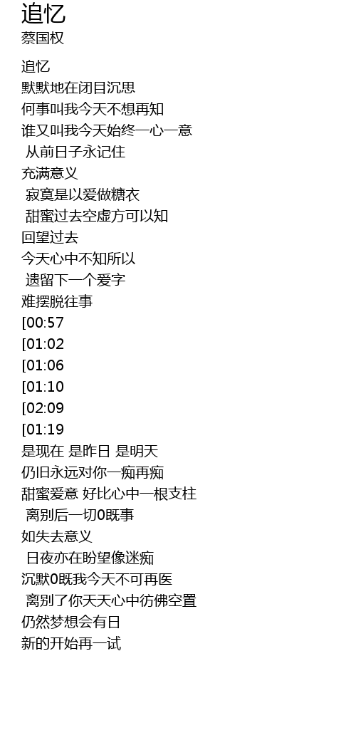 | [01:55][01:02] | 天天追忆你可知 |