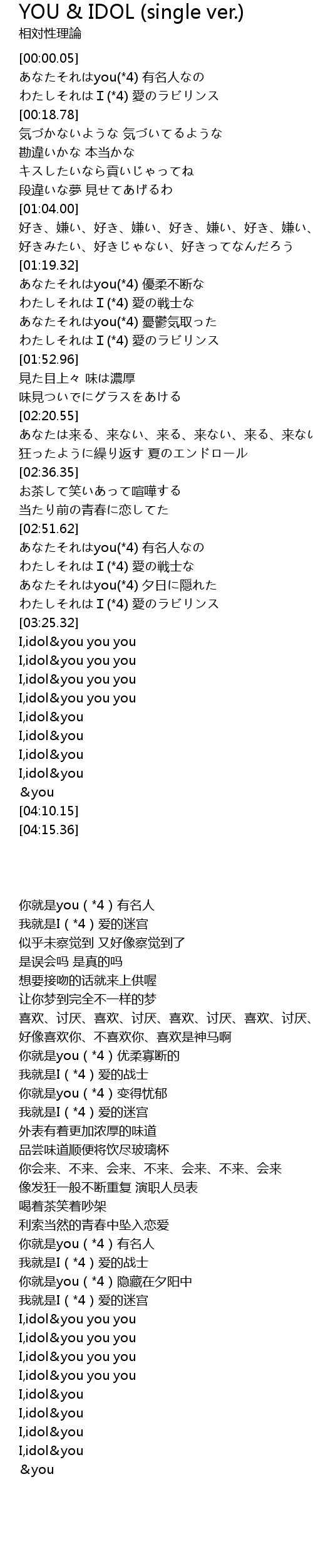 | [03:53.20] | I,idol&you |