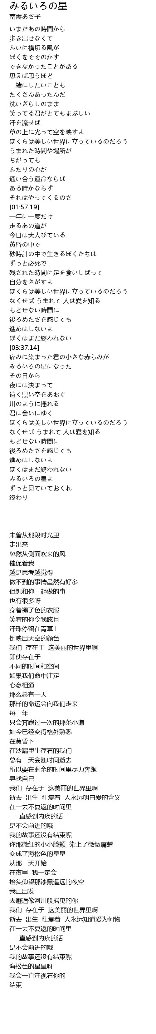 | [04:59.81] | みるいろの星よ |