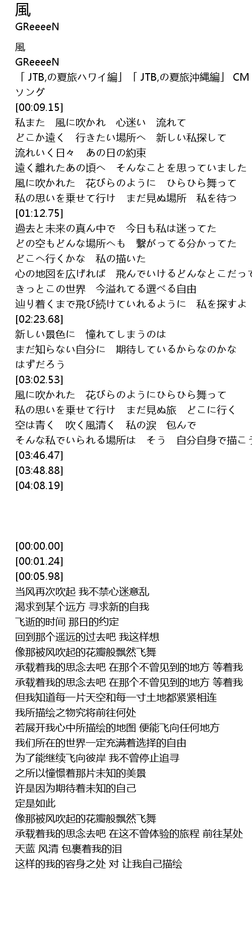 | [00:00.00] | 風 |