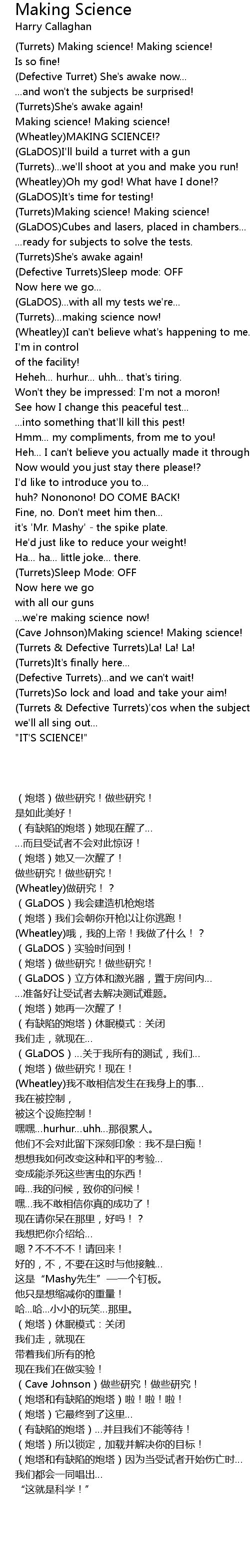 (Cave Johnson)Making science! Making science! |