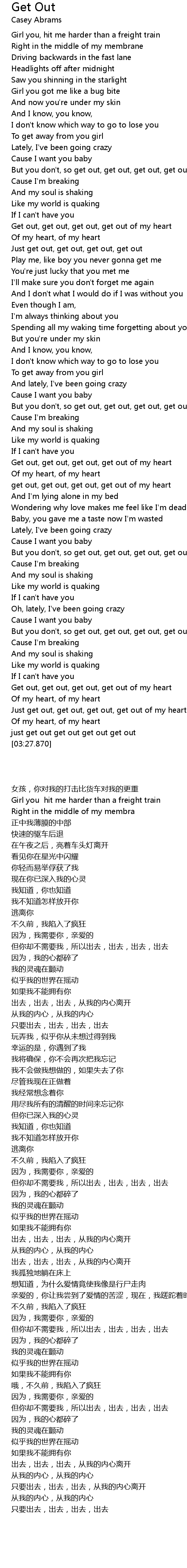 Get out, get out, get out, get out of my heart |