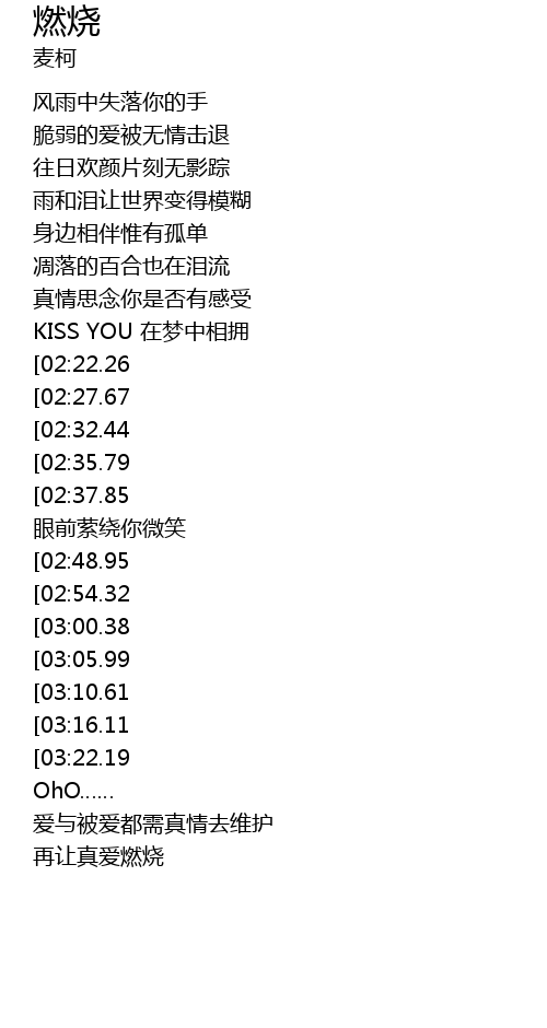 | [00:54.83][02:22.26] | MISS YOU 爱再燃烧 |