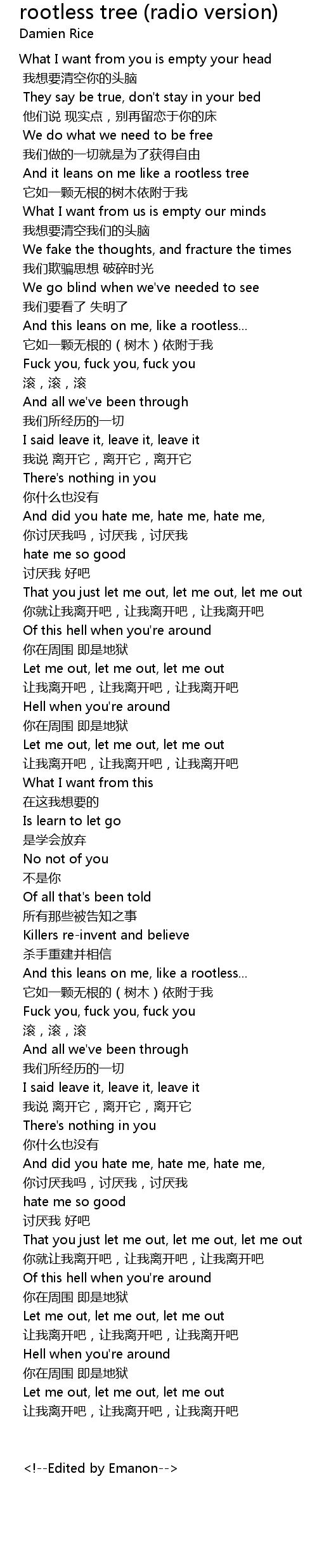 | ni jiu rang wo li kai ba, rang wo li kai ba, rang wo li kai ba | |