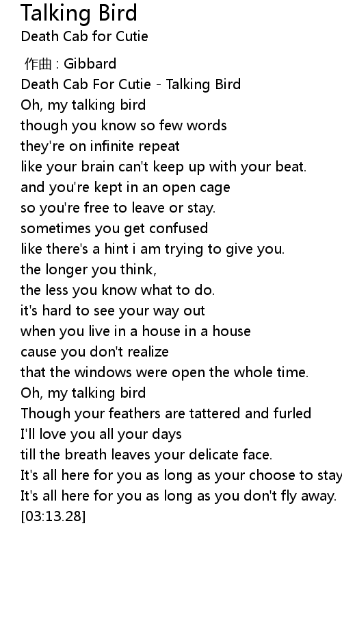 | [00:02.06] | Death Cab For Cutie Talking Bird |