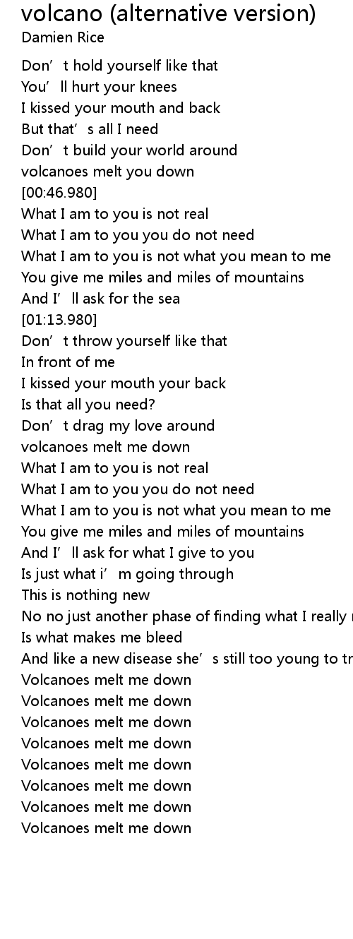 | [00:43.180] | volcanoes melt you down |