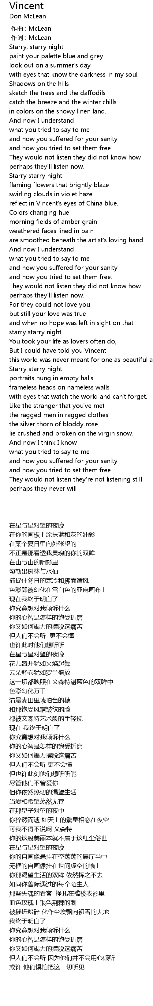 | 歌曲 | Vincent |