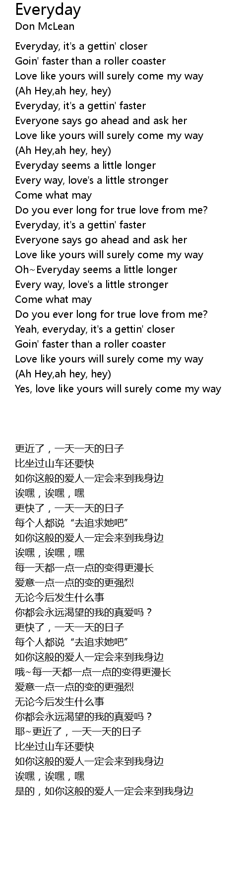 Everyday, it's a gettin' closer |