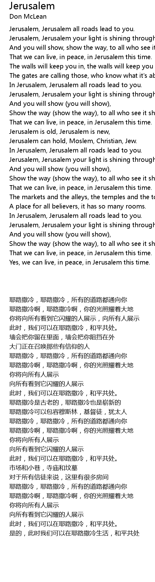 Jerusalem can hold, Moslem, Christian, Jew. |