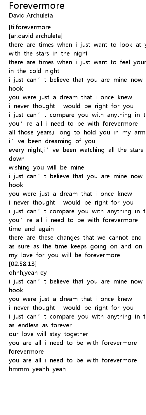 | [02:18.32] | you ' re all i need to be with forevermore |